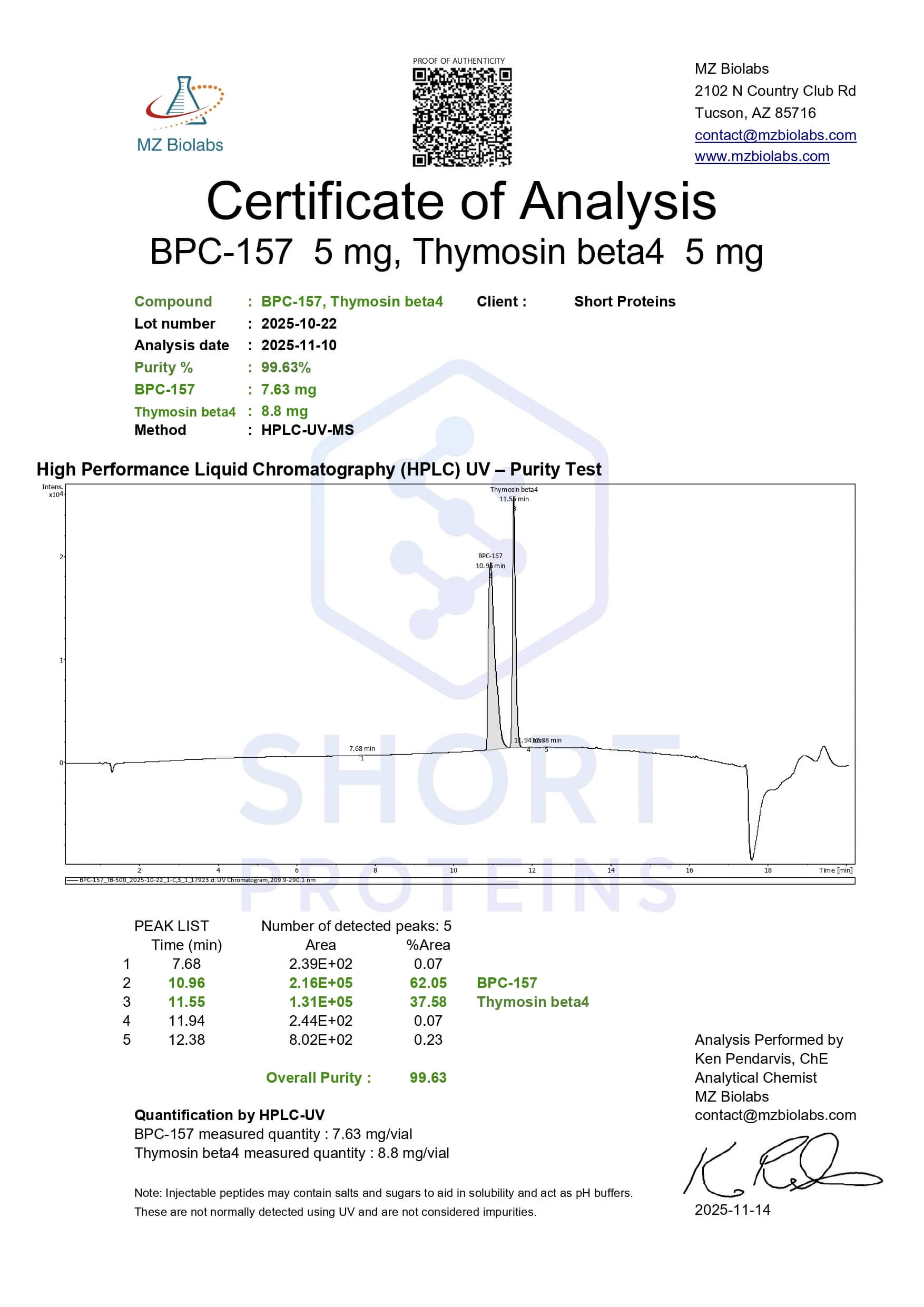 The combination of BPC-157 and TB-500 (Thymosin Beta-4) is frequently explored in preclinical studies for its potential synergistic effects on tissue recovery. Each peptide acts through distinct biological pathways, and when evaluated together, they may offer broader support for regenerative mechanisms than when studied individually.